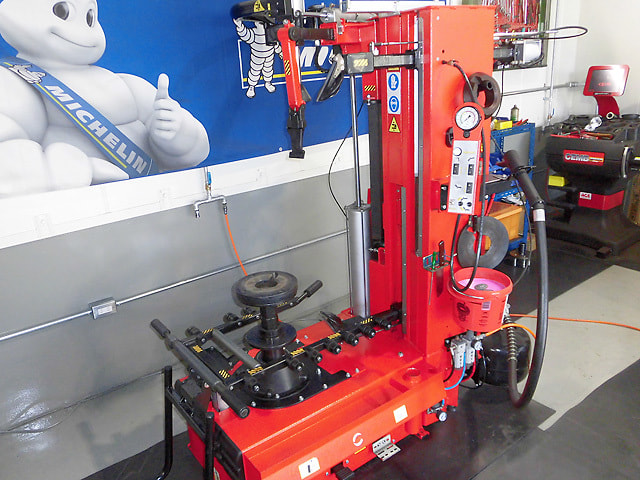 26インチも余裕で作業可能なレバーレスタイプとターンテーブルタイプのタイヤチェンジャーを使用。
