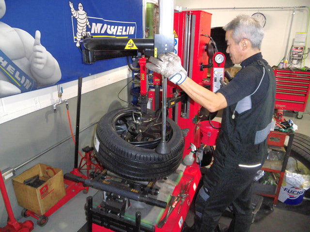 タイヤ購入時のゴム製エアーバルブ交換、車両からの脱着はサービスとなります。
